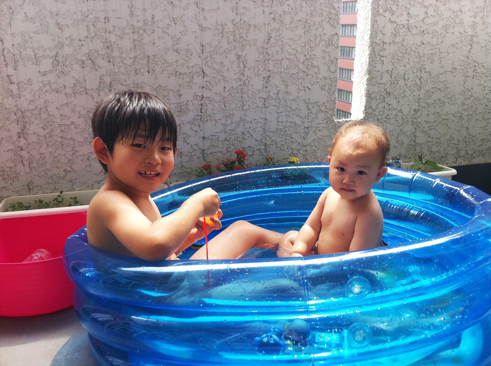 今年は暑いぞ~~!そして我が家の定番、ベランダプール!!